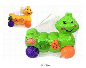 Размер игрушки: 19,5 х 18 х 13,5 см243.80 руб.487.60 руб. - Каталка-сортер арт. 5803 Гусеница цвета микс на веревке в сетке 23*11*19×Каталка-сортер арт. 5803 Гусеница цвета микс на веревке в сетке 23*11*19Каталка на верёвочке привлечёт внимание милым дизайном и надолго займёт малыша благодаря множеству полезных функций. Игрушка не только развлечёт ребёнка — с ней можно осваивать новые навыки! Занятия с сортером помогут крохе выучить цвета и счёт, потренировать логическое мышление, мелкую моторику, внимание и память. Рекомендовано детям от 3-х лет.