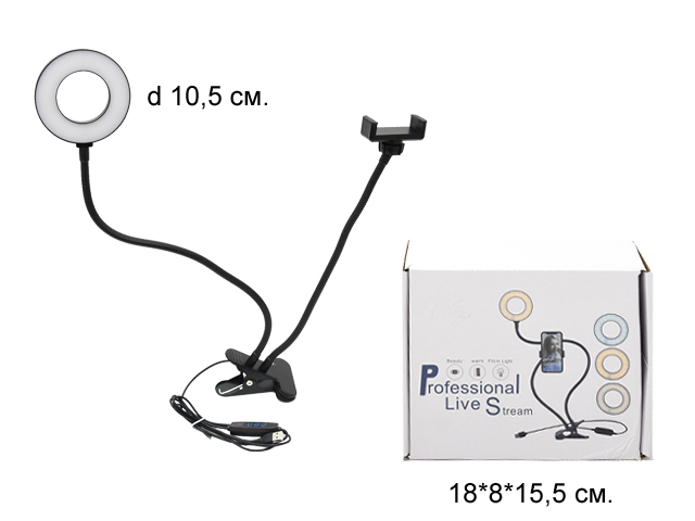 Кольцо осветитель арт. 1409-6 Светодиод. на прищепке с держателем в кор.