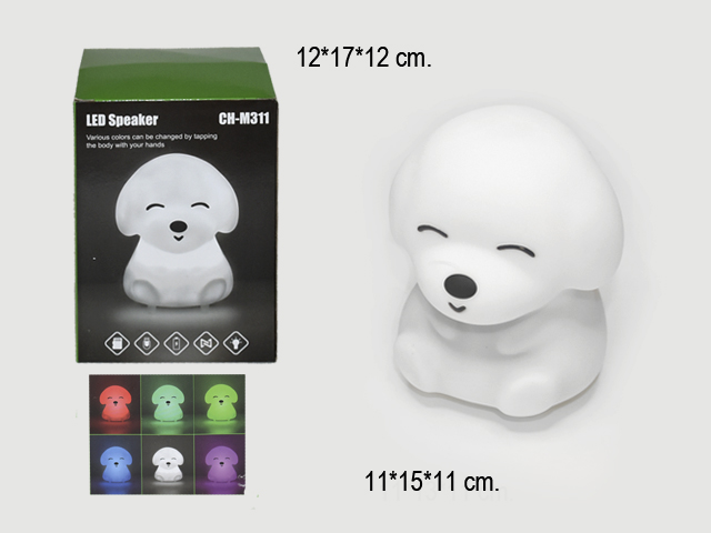 Колонка музыкальная арт. M311 Собака, меняет цвет в кор.Аккумуляторная батарея 700 mAh. Экологически чистый, нетоксичный, легкоочищающийся силикон высокого качество + ABS пластик безопасен для детей.