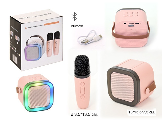 Колонка музыкальная арт. 15778-15 С микрофоном в кор._Функция изменения голоса, четкость звучания, RGB подсветка. Мощная батарея позволяет использовать колонку до 8-10 часов без подзарядки! В комплекте два микрофона, что позволяет одновременно выступать нескольким участникам сразу. Быстрое bluetooth соединение гарантирует мгновенное подключение к любому совместимому устройству. Отсутствие проводов делает использование лёгким и комфортным — никакой путаницы или неудобств.