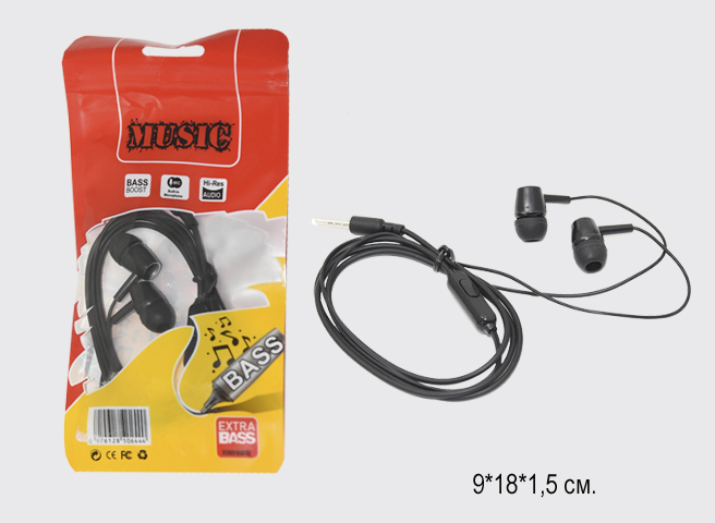 Наушники арт. 506444-2 MUSIC BASS проводные черные в пак.Возраст: 6+