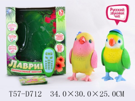 Размеры игрушки: 12х9.5х9 см.149.43 руб. 298.86 руб. - Попугай арт. 271/273" Интерактив. в кор. (6шт./бл.3)×Попугай арт. 271/273" Интерактив. в кор. (6шт./бл.3)Интерактивная игрушка Попугай может рассказать 4 сказки и спеть 12 песенок. Он отвечает на голосовые команды и может станцевать, реагирует на прикосновения, шевелит крыльями и клювом.