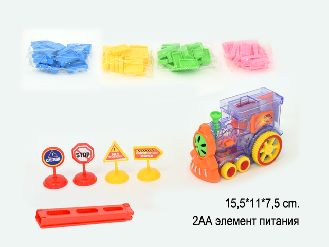 - Домино арт. 0906-49 Поезд на батарейках в пак._/48 шт./×Домино арт. 0906-49 Поезд на батарейках в пак._/48 шт./Забавный паровозик-домино выкладывает пластиковые блоки-доминошки (80 шт.) при движении. Блоки с тематиками на английском языке (математика, фрукты, животные, буквы, выражения). Для работы требуется 2 батарейки типа АА (не входят в комплект). Возраст: от 6 лет Производство: Китай Материал: пластик Размеры упаковки: 13.5 х 8 х 27 см486.21 руб. 972.41 руб.