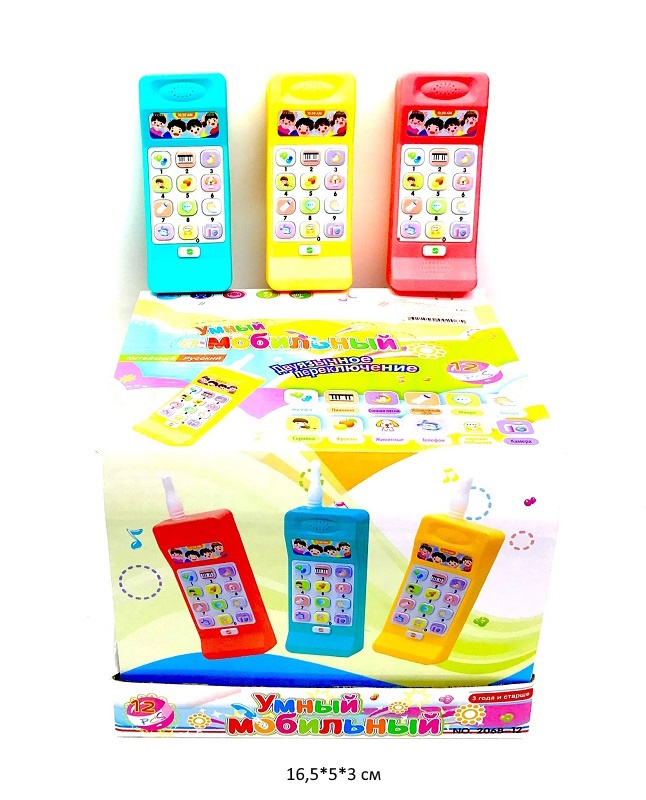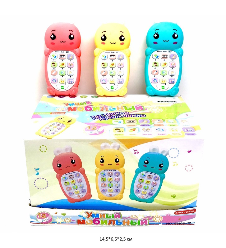 Размер упаковки: 18 х 12,5 х 6 см174 руб. 348 руб. - Телефон арт. 206B-12 Цвета микс муз. на батар. (12 шт.) шоубокс_×Телефон арт. 206B-12 Цвета микс муз. на батар. (12 шт.) шоубокс_Красочный обучающий телефон для малышей