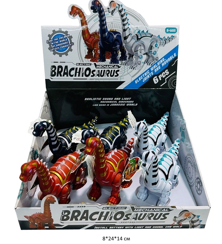Размер игрушки: 14 х 10 х 10 см187.19 руб. 374.38 руб. - Динозавр арт. 168-5A На батар. звук, ходит, глаза светятся (6 шт.) шоубокс•×Динозавр арт. 168-5A На батар. звук, ходит, глаза светятся (6 шт.) шоубокс•Робот динозавр Брахиозавр со световыми и звуковыми эффеками.