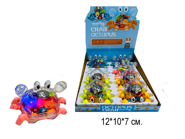 Размер игрушки: 14,5 х 6,5 х 2,5 см161.77 руб. 323.54 руб. - Морские арт. SR878-17 Краб, осьминог 2 вида шестеренки на бат. свет, звук (8 шт.) шоубокс•×Морские арт. SR878-17 Краб, осьминог 2 вида шестеренки на бат. свет, звук (8 шт.) шоубокс•Забавные морские животные крабики и осьминожки каждому ребенку. Ирушка едит по гладкой поверхности и крутится на 360 градусов, при столкновении-разворачивается и движется в обратную сторону. Корпус светится разноцветными огоньками, что непременно завлечет малыша. Под прозрачной спинкой видно как крутятся разноцветные шестеренки. Игрушка проигрфвает веселую ненавязчивую песенку. Работает от батареек (нет в комплекте).