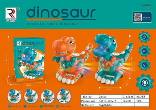 Размер игрушки: 8 х 24 х 9 см300.43 руб. 600.86 руб. - Динозавр арт. 168-4A На батар. звук, ходит, глаза светятся (6 шт.) шоубокс•×Динозавр арт. 168-4A На батар. звук, ходит, глаза светятся (6 шт.) шоубокс•Робот динозавр Паразауролоф со световыми и звуковыми эффеками.