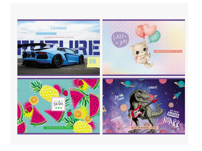Альбом для рисования 08л. А4 "BG" Mix. Универсальный, эконом, на скрепке, арт.АР4ск8 10966 (8) АР4ск