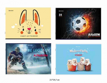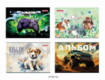 Содержит 40 листов плотностью 100 г/м2 формата А4 (195х285 мм). Красочная обложка выполнена из мелованного картона. Скрепление листов осуществляется с помощью евроспирали. Подходит для смешанных техник рисования: красками, карандашами и фломастерами. Поставляется в нескольких вариантах дизайна (без возможности выбора).