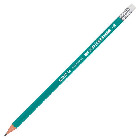 Карандаш чернографитный STAFF "EVERYDAY" BLP-963, 1 шт., НВ, с ластиком, пластиковый, зеленый корпус