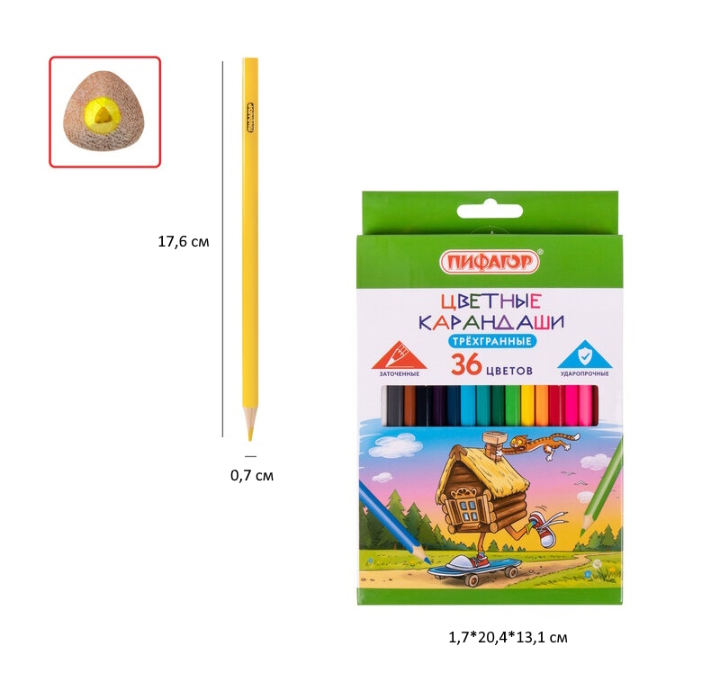 кс_Карандаши цветные арт. 181824 ПИФАГОР "Сказки", 36 цветов, трехгранные, натуральное деревоКоличество цветов: 36 шт.