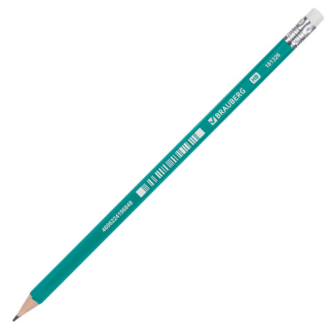 Карандаш чернографитный BRAUBERG, 1 шт., "Grass", НВ, с резинкой, пластиковый, корпус зеленый, 18132