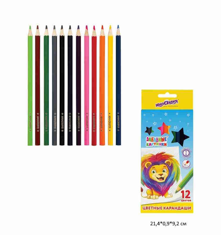 кс_Карандаши цветные арт. 181643 ЮНЛАНДИЯ "ЗАБАВНЫЕ КАРТИНКИ" 12 цв.шестигранные, грифель 3ммКоличество цветов: 12 шт.
