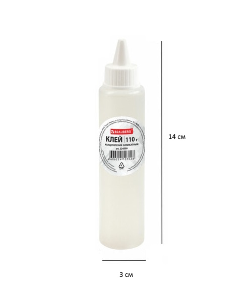 Размер в упаковке: 11.8 x 5.6 x 2.6 см18.83 руб. 37.65 руб. - кс_Клей канцелярский силикатный арт. 224599 BRAUBERG "Classic" (для бумаги, картона) 110 г×кс_Клей канцелярский силикатный арт. 224599 BRAUBERG "Classic" (для бумаги, картона) 110 гКлей канцелярский силикатный во флаконе предназначен для склеивания бумаги, картона. Имеет объем 110 мл. Пластиковый дозатор обеспечивает точное и равномерное нанесение. Обладает устойчивостью к морозу и отсутствием запаха. Не токсичен. Прозрачный клей наносится тонким слоем, обеспечивая быстрое схватывание поверхностей, а также экономичное расходование. Съемный колпачок предохраняет клей от засыхания.