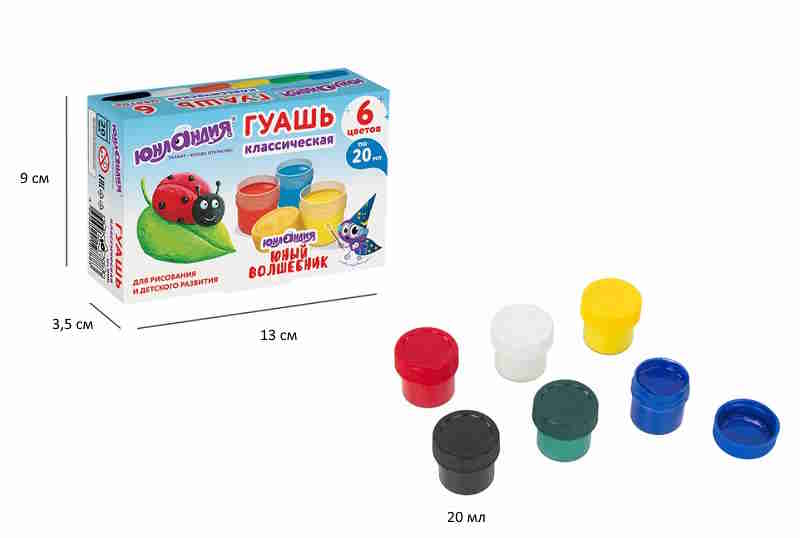 - кс_Гуашь арт. 191331 ЮНЛАНДИЯ "ЮНЫЙ ВОЛШЕБНИК" 6 цв. по 20 мл высшее качество б/кисти×кс_Гуашь арт. 191331 ЮНЛАНДИЯ "ЮНЫЙ ВОЛШЕБНИК" 6 цв. по 20 мл высшее качество б/кистиШкольная гуашь высшего качества поможет создать юным художникам первые шедевры. Идеальна для нанесения на бумагу, картон, дерево, стекло, керамику.