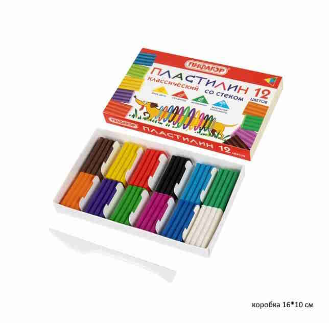 кс_Пластилин классический арт. 106505 ПИФАГОР "ЭНИКИ-БЕНИКИ СУПЕР" 12 цветов 120 г, стекКоличество цветов в наборе: 12