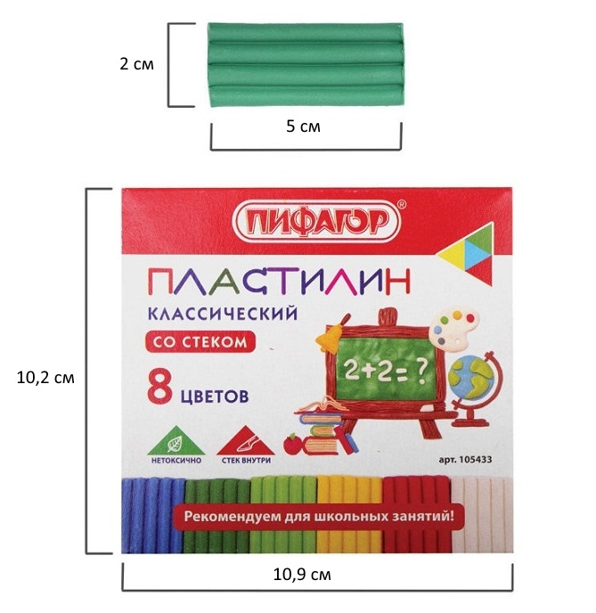 кс_Пластилин классический арт. 105433 ПИФАГОР ШКОЛЬНЫЙ 8 цветов 120 г, со стеком Вид упаковки: картонная коробка 1,8х10,2х10,9 см