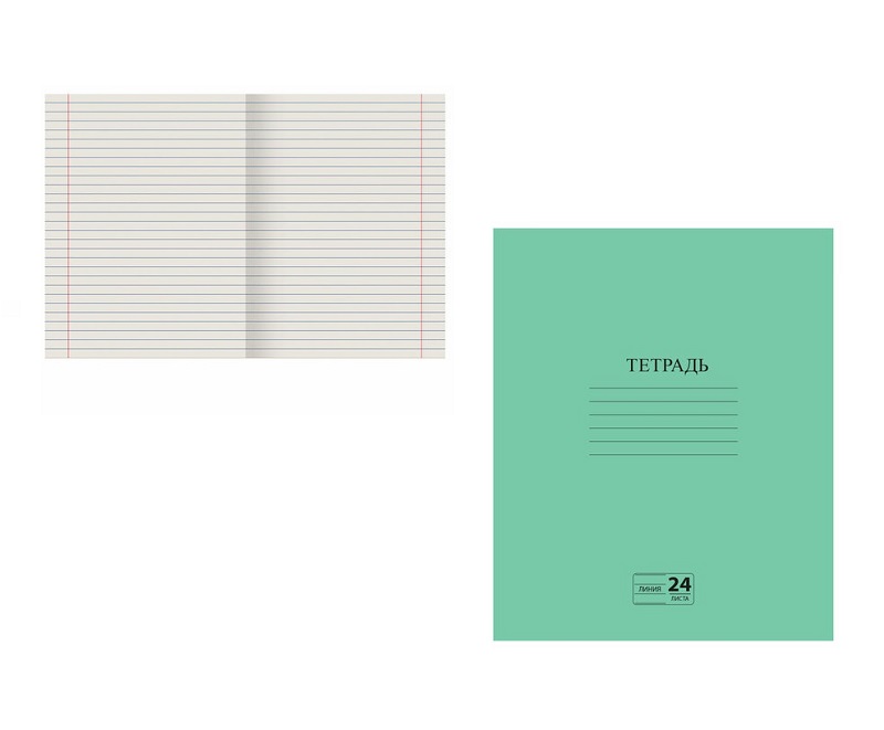 кс_Тетрадь арт. 107126 ЗЕЛЁНАЯ обложка 24 л., линия с полями, офсет №2 ЭКОНОМ "ПИФАГОР"Линовка блока: линия
