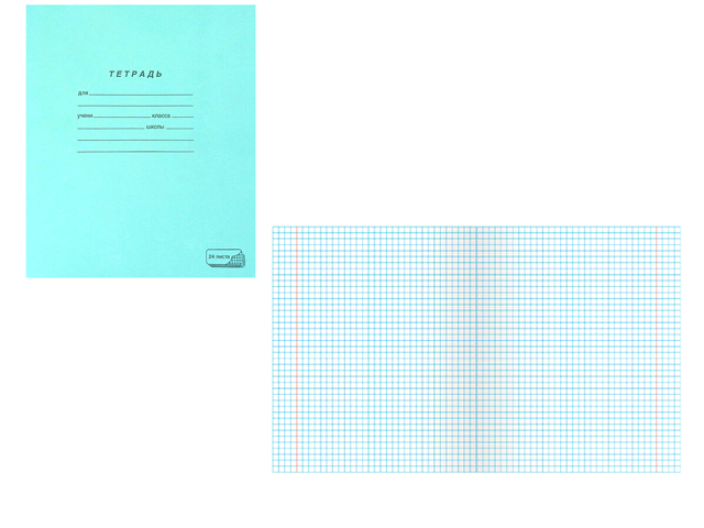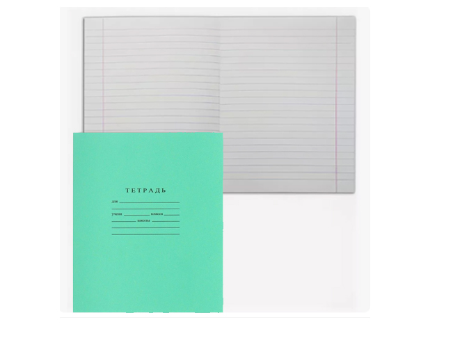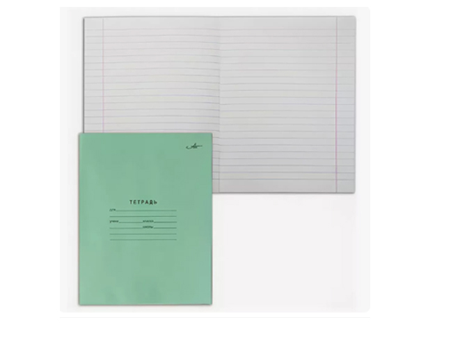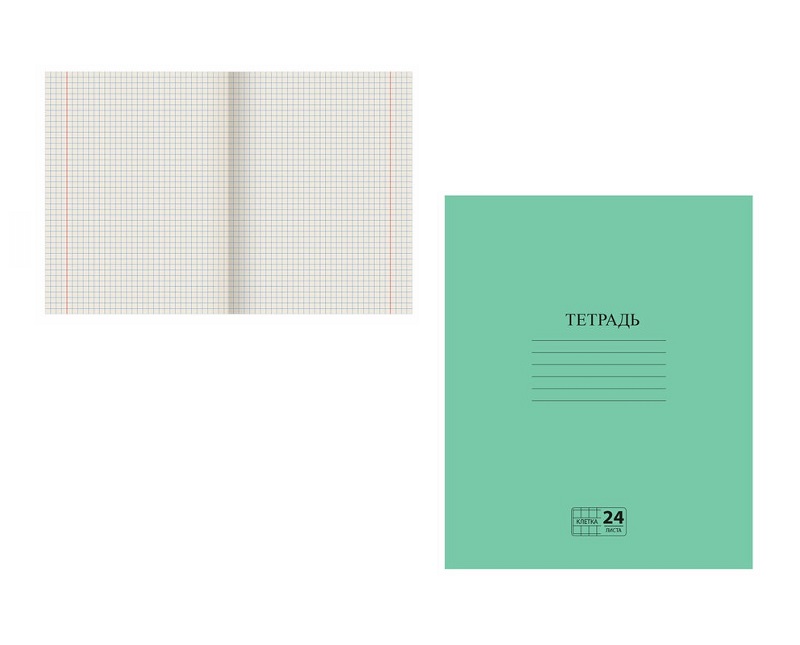 кс_Тетрадь ЗЕЛЁНАЯ обложка 24 л., 106454 клетка с полями, офсет, "ПЗБМ",19858Внутренний блок состоит из 24 листов офсетной бумаги плотностью 60 г/м2, уровень белизны - 90%, линовка - клетка с полями. Скрепка надежно соединяет листы между собой.