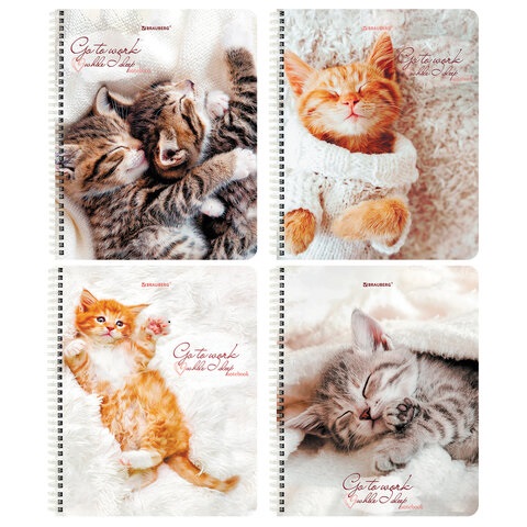 кс_Тетрадь арт. 404425 А5, 96 л., BRAUBERG, гребень, клетка обложка картон "Котики" (микс в спайке)Количество листов: 96