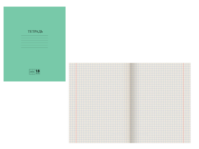 кс_Тетрадь арт. 104987 ЗЕЛЁНАЯ обложка 18 л., линия с полями, офсет №2 ЭКОНОМ "ПИФАГОР"