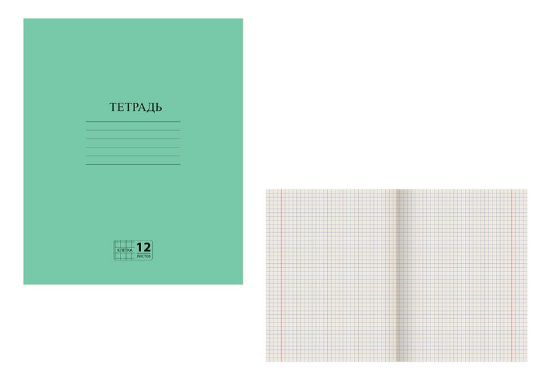 кс_Тетрадь арт. 106451 ЗЕЛЁНАЯ обложка 12 л., крупная клетка с полями, офсет "ПЗБМ"Линовка блока: крупная клетка
