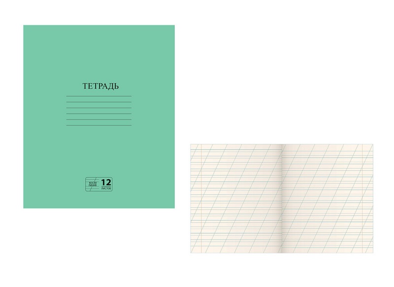 кс_Тетрадь арт. 106725 ЗЕЛЁНАЯ обложка 12 л. косая линия с полями, офсет №2 ЭКОНОМ "ПИФАГОР"Линовка блока: косая линия