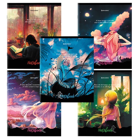 кс_Тетрадь арт. 404385 А5 48 л. BRAUBERG скоба линия обложка картон "Magical Colors"(микс в спайке)Количество листов: 48
