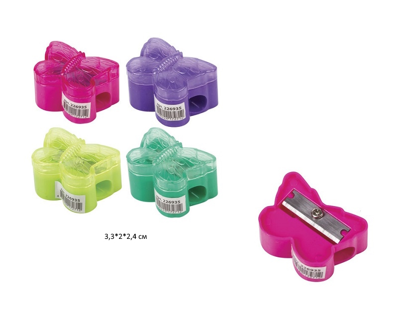 кс_Точилка арт. 226935 ПИФАГОР с контейнером пластиковая "Бабочка" цвет корпуса ассортиМатериал корпуса: пластик