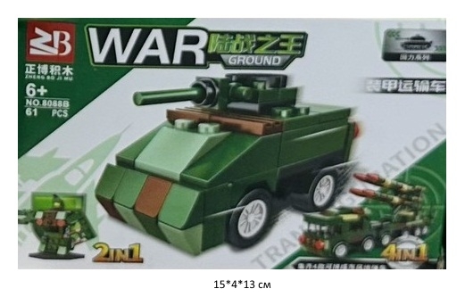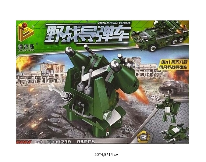 - Конструктор арт. 1418-6" Воен. техн. (8 шт.)/шоубокс 21*9*4,5/144шт.//бл./×Конструктор арт. 1418-6" Воен. техн. (8 шт.)/шоубокс 21*9*4,5/144шт.//бл./Конструктор состоит из 85 деталей, из которых можно собрать образец военной техники. Серия состоит из 8 разных наборов, которые можно объединить между собой и собрать огромный боевой танкер.