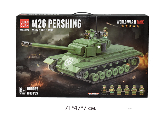 - Конструктор арт. 100065 Американский Танк Першинг М26 1013 дет. в кор.~_•/16 шт./×Конструктор арт. 100065 Американский Танк Першинг М26 1013 дет. в кор.~_•/16 шт./Конструктор состоит из 1013 деталей, из которых можно собрать военный танк с открывающимся люком и подвижной пушечной башней. Набор так же включает в себя различные аксессуары, оружие и минифигурки солдатов. Детали отлично развивают мелкую моторику и воображение!