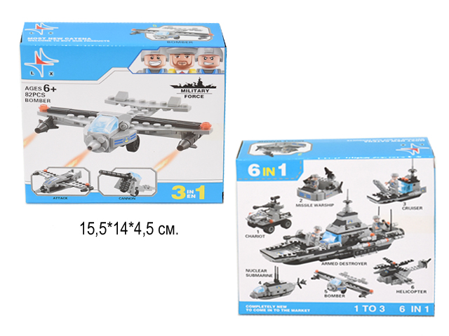 - Конструктор арт. A010-5 Военная техника 82 дет. в кор.~×Конструктор арт. A010-5 Военная техника 82 дет. в кор.~Конструктор военный самолет 3 в 1 из которого можно так же собрать истребитель и пушку.
