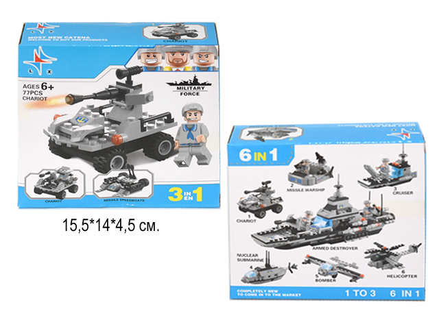 Размер упаковки: 15,5 х 14 х 4,5 см110.13 руб. 220.25 руб. - Конструктор арт. A010-1 Военная техника 77 дет. в кор.~×Конструктор арт. A010-1 Военная техника 77 дет. в кор.~Конструктор военное самоходное оружие 3 в 1 из которого можно так же собрать другие виды вооружений