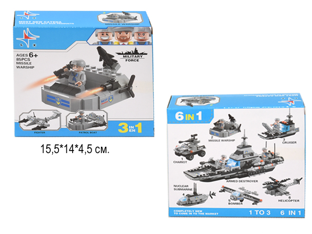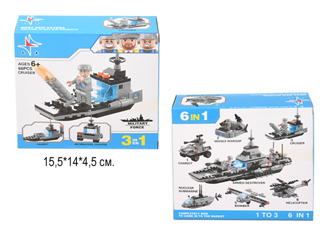 Размер упаковки: 15,5 х 14 х 4,5 см110.13 руб. 220.25 руб. - Конструктор арт. A010-3 Военная техника 66 дет. в кор.~×Конструктор арт. A010-3 Военная техника 66 дет. в кор.~Конструктор военная лодка 3 в 1 из которого можно так же собрать катер и пантон