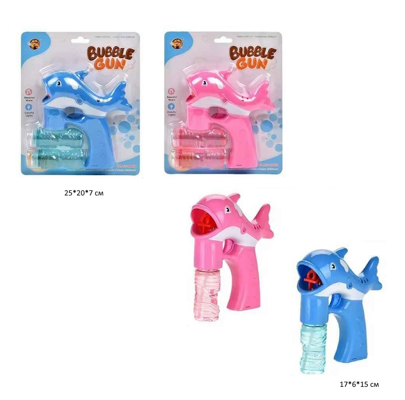 Пистолет арт. MY155Y-2 Кит и пузыри мыльные цвета микс на листе_