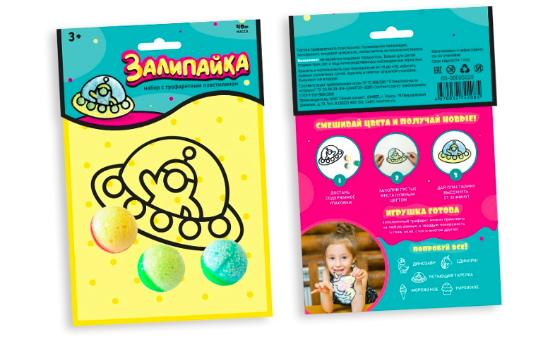 Трафаретный пластилин нового поколения «Залипайка», благодаря своей формуле этот продукт не похож ни на какой другой. В его составе находятся специальное связующее и наполнитель. Это не шариковый пластилин и не слайм с добавками, а принципиально новая масса, которая идеально подходит для создания плоских объектов с помощью трафаретов.