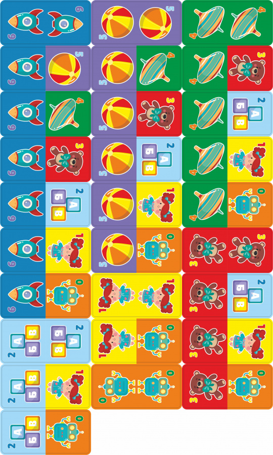Эта версия популярной игры "Домино" сделана специально для малышей. Мы используем понятные яркие изображения, которые позволят не только изучать окружающий мир, но и непосредственно играть в домино. С малышом не обязательно соблюдать все оригинальные правила игры, можно просить его совмещать одинаковые изображения на костяшках, выстраивая цепочку. Такая игрушка развивает память, логические способности, мелкую моторику.