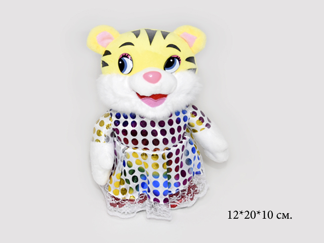 - им Тигрица арт. 8588 В платье фиолетовом 2 детские песни, (муз.) на бат. в пак.×им Тигрица арт. 8588 В платье фиолетовом 2 детские песни, (муз.) на бат. в пак.Музыкальная игрушка в виде забавного Тигренка. Если нажать нашивку на лапке, тигрёнок весело побежит, споёт весёлую песенку, а затем сам остановится. Также тигра можно остановить во время движения, нажав ему повторно на лапку с нашивкой. Игра с озвученной игрушкой развивает: - воображение и фантазию - звуковое восприятие и тактильное восприятие - социально-коммуникативные навыки Игрушка изготовлена из гипоаллергенных материалов. Для работы необходимы 3 батарейки типа АА (не входят в комплект). Возраст: от 3 лет Материал: иск.мех, пластик Производство: Китай Размер упаковки: 17 х 28 х 11 см592.56 руб. 1 185.12 руб.