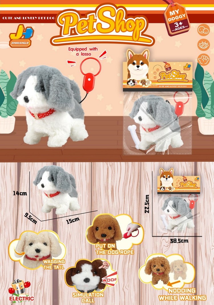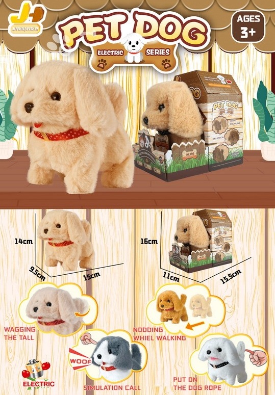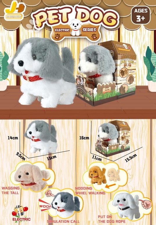 У питомца мягкая и красивая шерстка. Щенок ходит, гавкает, виляет хвостиком и поворачивает голову. Игрушка включается при нажатии на кнопку на поводке.