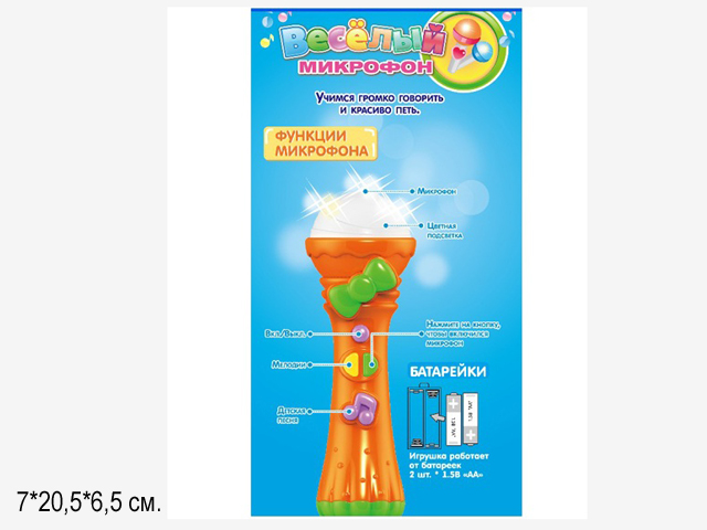 - Микрофон арт. 7389" На бат. в кор. 20,6*7*6,5 /72шт.//бл.36/×Микрофон арт. 7389" На бат. в кор. 20,6*7*6,5 /72шт.//бл.36/Музыкальная игрушка, которая поможет усилить голос вашей маленькой звезды. Учитесь громко говорить и красиво петь.