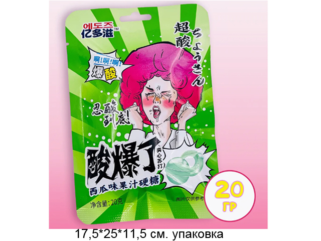 Конфета арт. 640206-3 Суперкислая "Лайм" 20 г 20 шт. в зеленой кор./*