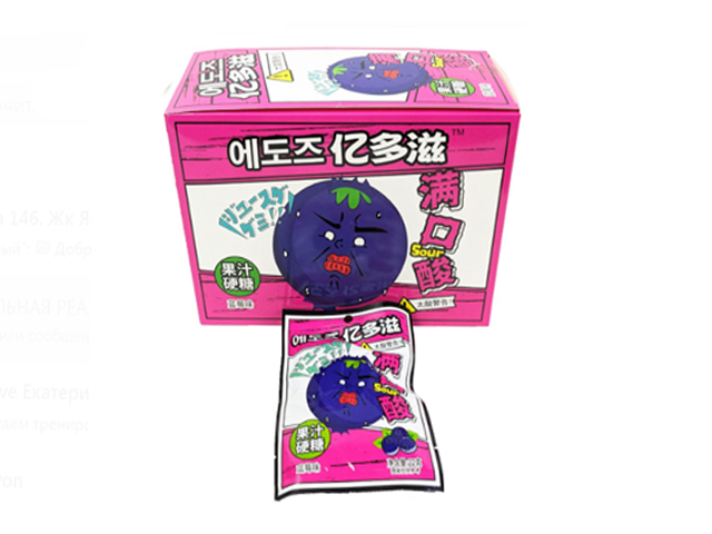 Конфета арт. 640084-2 Жевательная кислая "Черника" 22 г 20 шт. розовая кор.;*