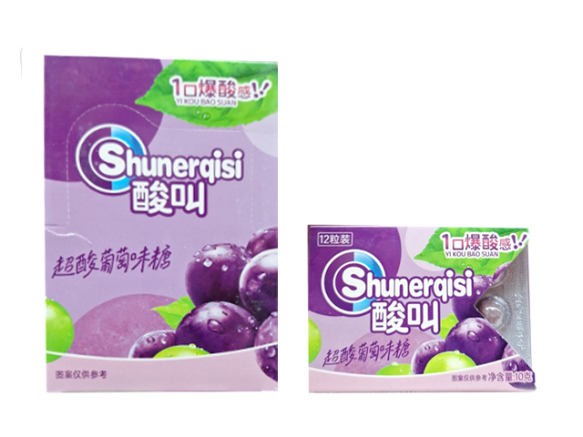Конфета арт. 112949/112888 Суперкислая "Виноград" 10 г на листе 30 шт. в кор.*