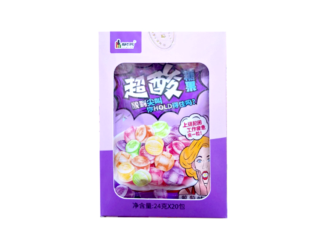 Конфета арт. 404267-1 Жевательная суперкислая "Виноград" 20 г в пак. 20 шт. в кор.#
