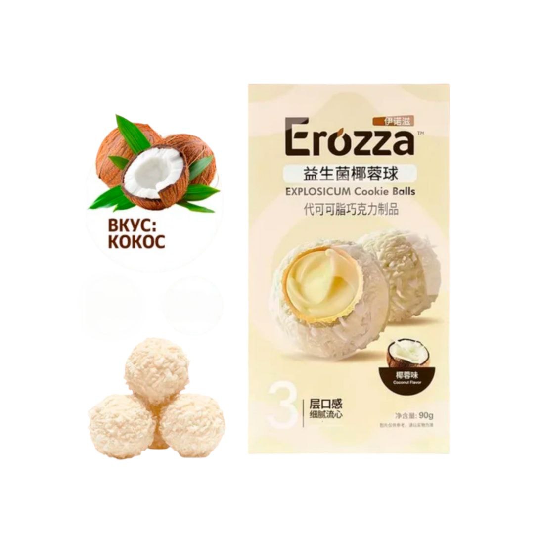 Печенье арт. 140783 Вафельный шарик с начинкой вкус "Кокос" 90 г в кор.*