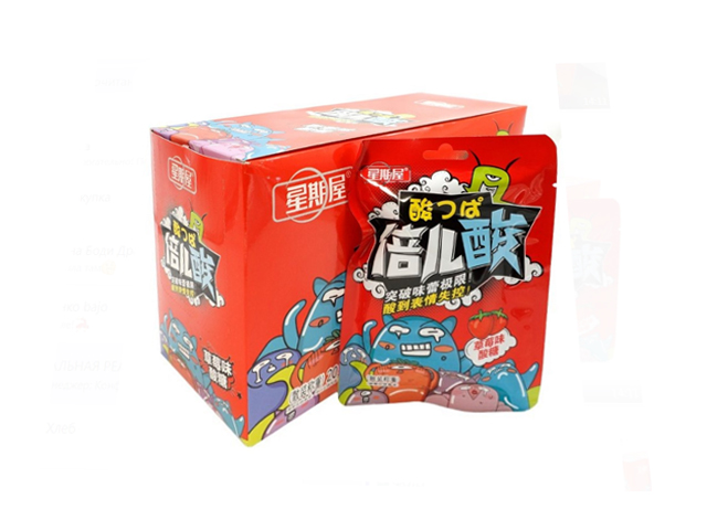 Конфета арт. 500988-5/680081 Кислая Клубника 24 г в пак. 20 шт. в красной кор./