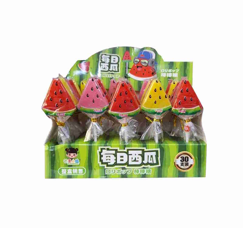 Конфета арт. 840510 Карамель на палочке "Арбуз" 16 г 30 шт. в кор.*#