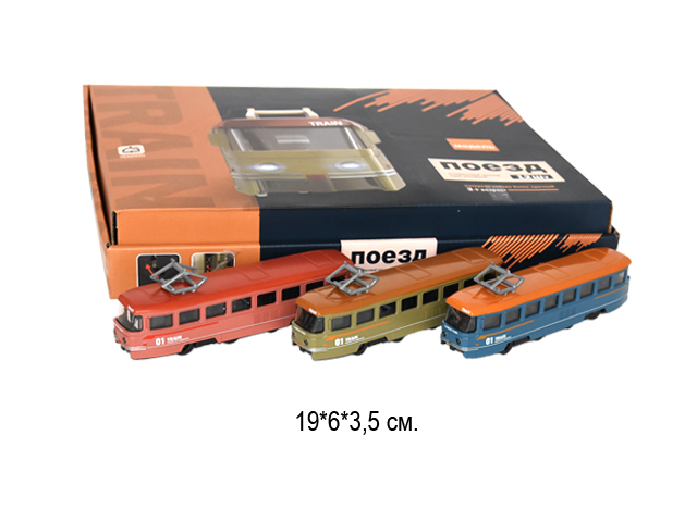 - Трамвай арт. 1812-12D Инерц. звук, свет (12 шт.) шоубокс+~•×Трамвай арт. 1812-12D Инерц. звук, свет (12 шт.) шоубокс+~•Трамвай с инерционным механизмом, чтобы привести его в движение, достаточно оттянуть назад и отпустить, и трамвай поедет самостоятельно. Игрушка хорошо тренирует мелкую моторику рук и координацию движений. Имеет звуковые и световые эффекты.
