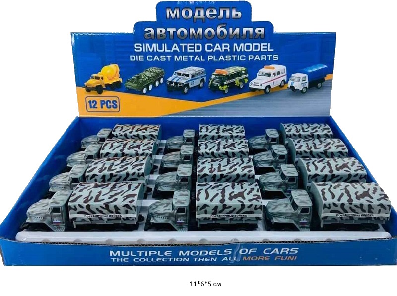 Модель металл. арт. 200-4 Военный грузовик (12 шт.) шоубокс~