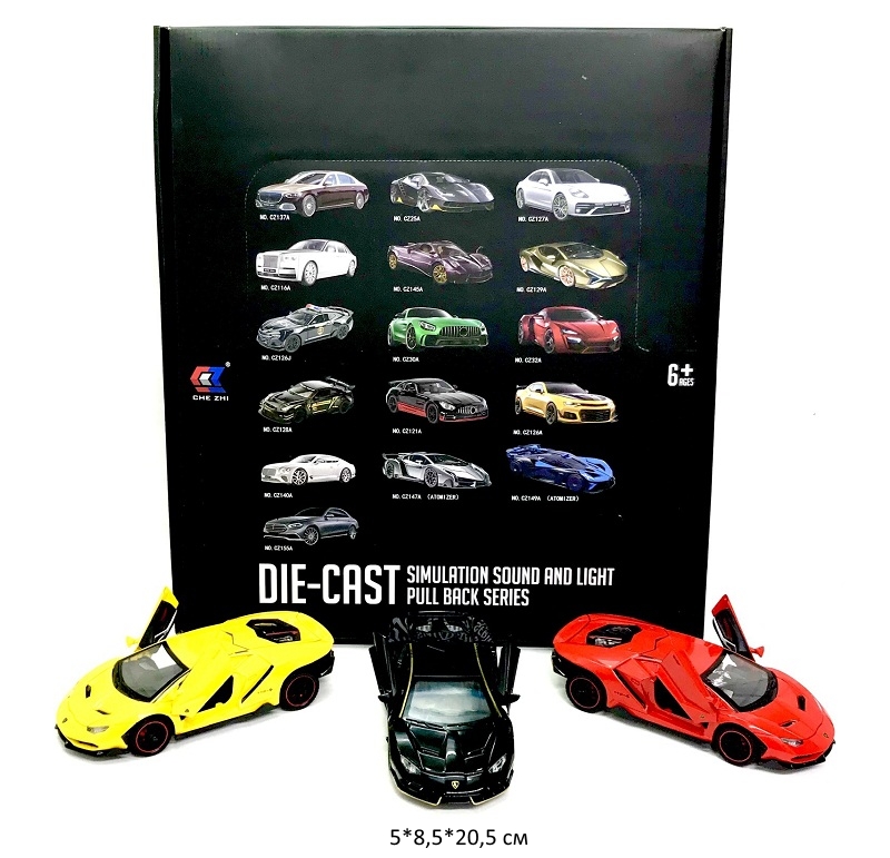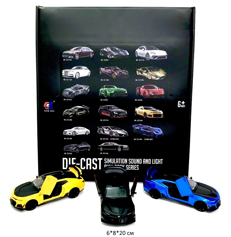 - Модель металл. арт. CZ38A Суперкар цвета микс (12 шт.) шоубокс_~×Модель металл. арт. CZ38A Суперкар цвета микс (12 шт.) шоубокс_~Металлическая машинка Суперкар цвета в ассортименте. Открываются двери, детально проработанный салон.